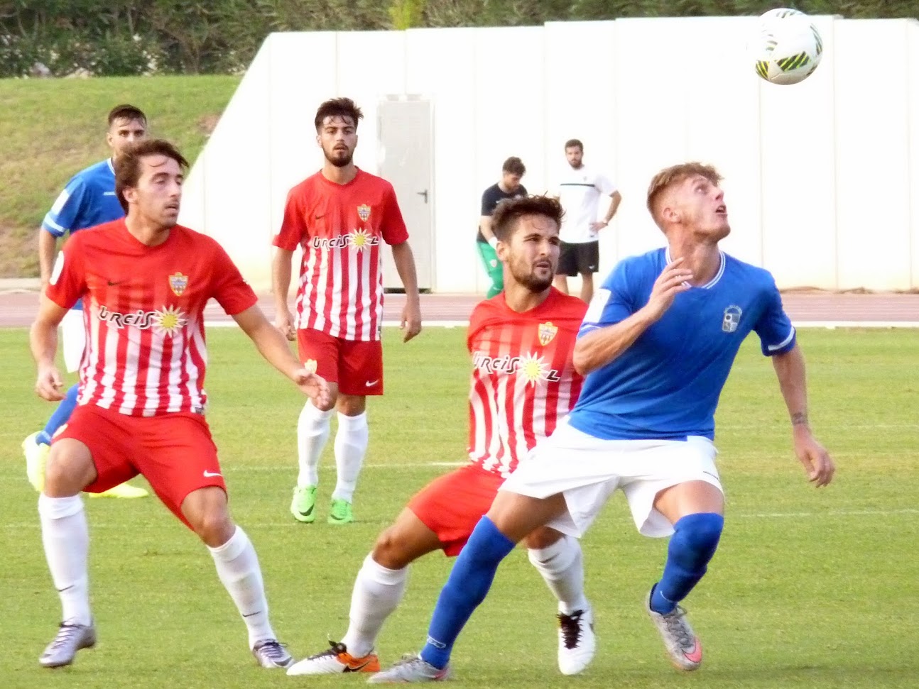 El encuentro empezó bastante bien para los de Fernando Porto, muy bien posicionado e incluso poniendo en apuro durante los primeros instantes del partido al filial almeriense que no llegaba con profundidad y se mostraba muy incómodo en ataque.
