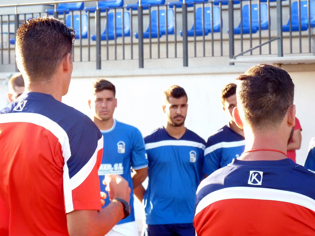 La primera sesión de entrenamientos se inició con una charla por parte del cuerpo técnico que repite tras el ascenso a Tercera División y de Juan Moreno, presidente de la entidad que dio la bienvenida a la nueva temporada y presento a los nuevos jugadores que bestirán esta temporada la camiseta azulilla.